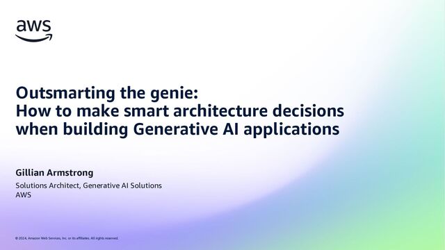 The genie is out of the bottle. Generative AI is everywhere, and promising to fulfil your every wish. Just like wishes however, building generative AI apps can be risky if not well thought out. This session explores the architectural decisions and trade-offs you need to consider to build reliable and performant generative AI applications. We’ll look at what generative AI is (and isn’t), what factors drive model and tooling choices, techniques for enhancing safety and accuracy, considerations for testing and optimising, as well as responsible AI principles.