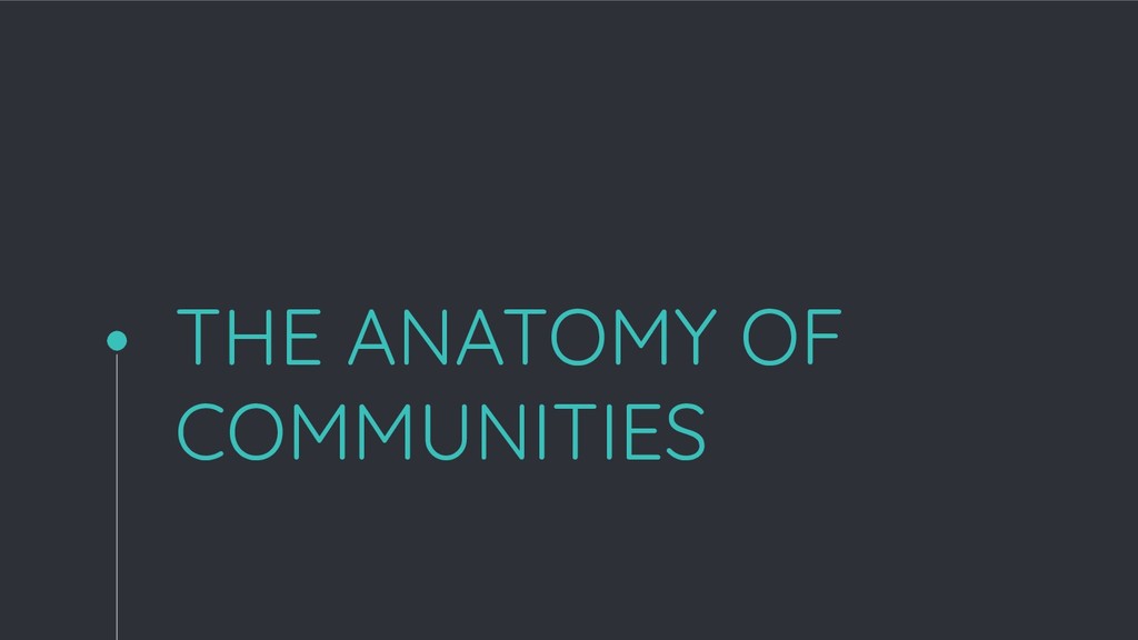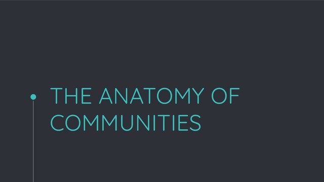 The Anatomy of Communities is a talk about the human centric approach towards fostering a positive space in communities. It describes the elements of a community and how to track its health.