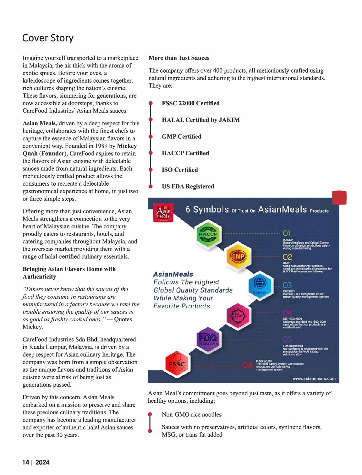 Asian Meals, driven by a deep respect for this heritage, collaborates with the finest chefs to capture the essence of Malaysian flavors in a convenient way. Founded in 1989 by Mickey Quah (Founder), CareFood aspires to retain the flavors of Asian cuisine with delectable sauces made from natural ingredients. Each meticulously crafted product allows the consumers to recreate a delectable gastronomical experience at home, in just two or three simple steps.