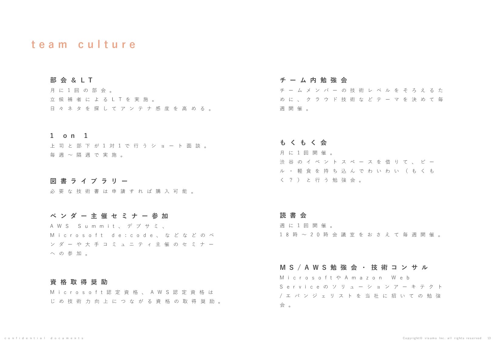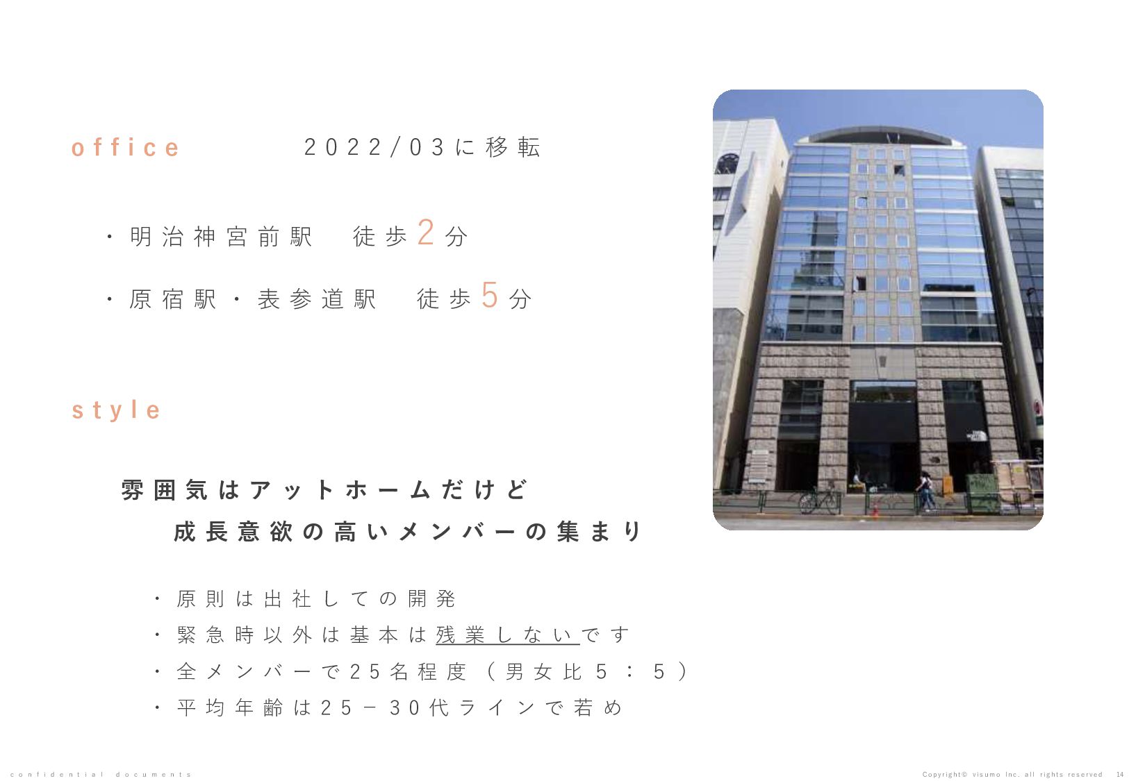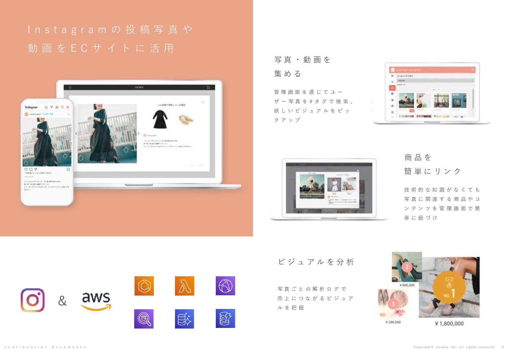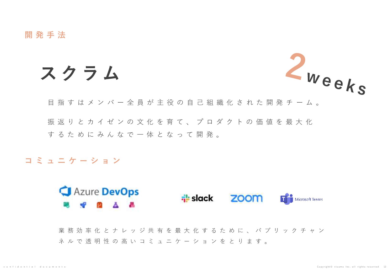目 標 や 予 想 の 達 成 、 将 来 の 業 績 を 保 証 す る も の で は あ り ま せ ん 。 本 書 ( 別 紙 含 む ) に は 、 株 式 会 社 v i s u m o に 権 利 の 帰 属 す る ノ ウ ハ ウ 及 び 機 密 情 報 が 含 ま れ て お り 、 予 め の 当 社 の 書 面 に よ る 承 諾 な き 限 り 第 三 者 へ 開 示 は で き ま せ ん 。 本 資 料 に 関 す る 一 切 の 権 利 は 、 株 式 会 社 v i s u m o に 帰 属 し 、 無 断 転 載 ・ 流 用 ・ 引 用 を 禁 じ ま す 。 本 書 ( 別 紙 含 む ) の 内 容 に は 、 特 許 権 、 実 用 新 案 権 、 意 匠 権 、 そ の 他 、 本 書 ( 別 紙 含 む ) に 掲 載 さ れ て い る 商 品 名 、 会 社 名 等 は 各 会 社 の 商 号 、 商 標 ま た は 登 録 商 標 で す 。 本 文 中 で は T M , R マ ー ク は 表 示 し て お り ま せ ん 。 株 式 会 社 v i s u m o 東京都渋谷区神宮前6丁目10−11 0 3 - 6 8 2 2 - 4 8 8 8 h t t p s : / / v i s u m o . a s i a / confidential documents