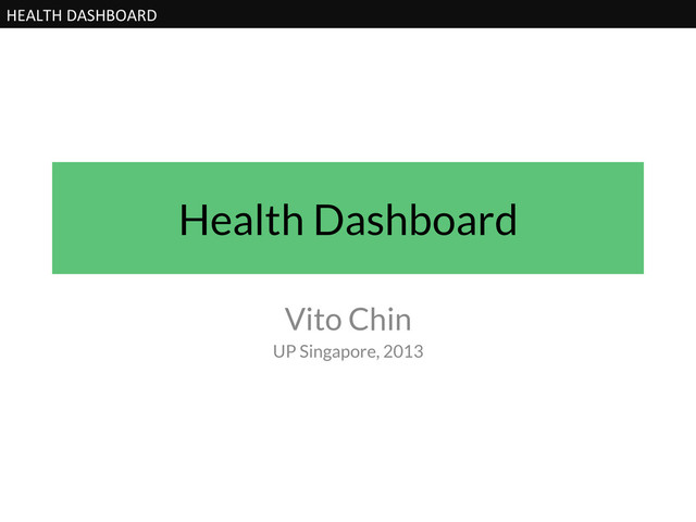 This is presented at Health UP Singapore (http://www.upsingapore.com/health-up/). An idea on how a holistic health dashboard for individuals and organisations could look like. Inspired by the 4Ps: Personal, Participatory, Preventive, Predictive.