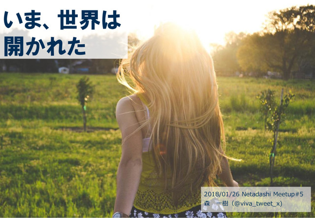 2018/01/26 Netadashi Meetup #5(新人LT祭り)のトリとして発表させていただきました。 https://atnd.org/events/93481?k=479ad9fc84bf5726d4df2c6d24c9909d