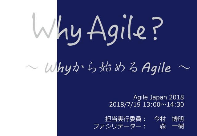 2018/07/19 Agile Japan 2018 セッション#5 「Why Agile?〜Whyからはじめるアジャイル〜」でのワークショップの資料です。