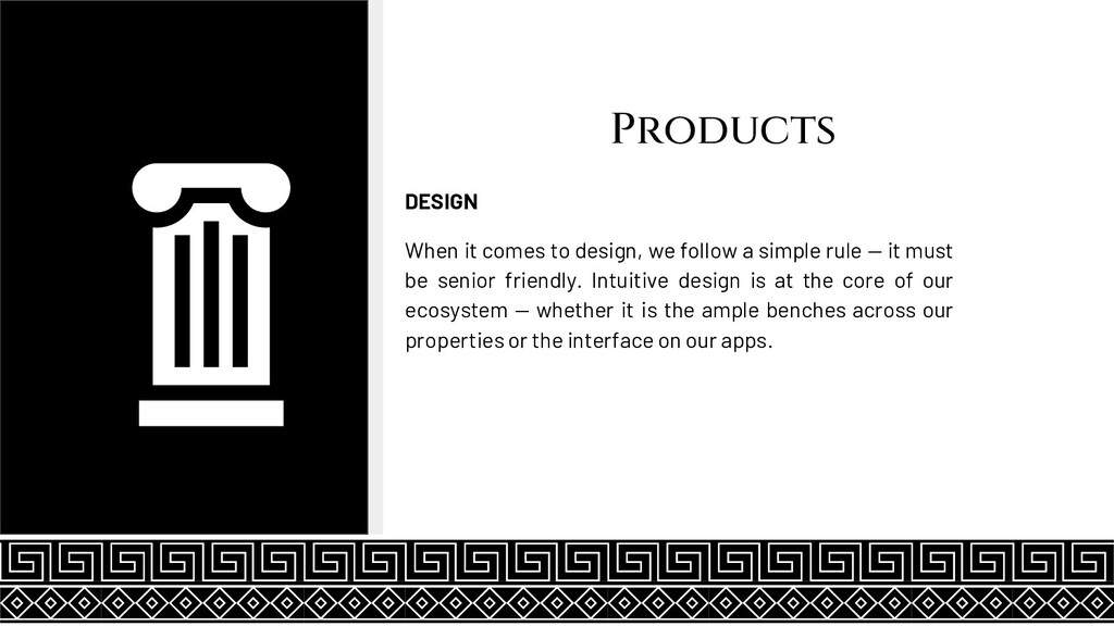 simple rule — it must be senior friendly. Intuitive design is at the core of our ecosystem — whether it is the ample benches across our properties or the interface on our apps.