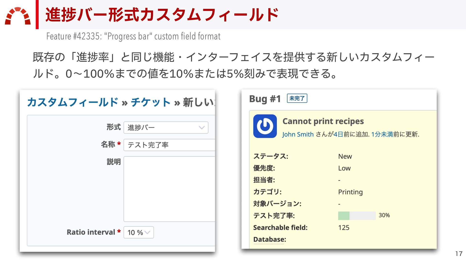 進捗バー形式カスタムフィールド Feature #42335: "Progress bar" custom fi eld format