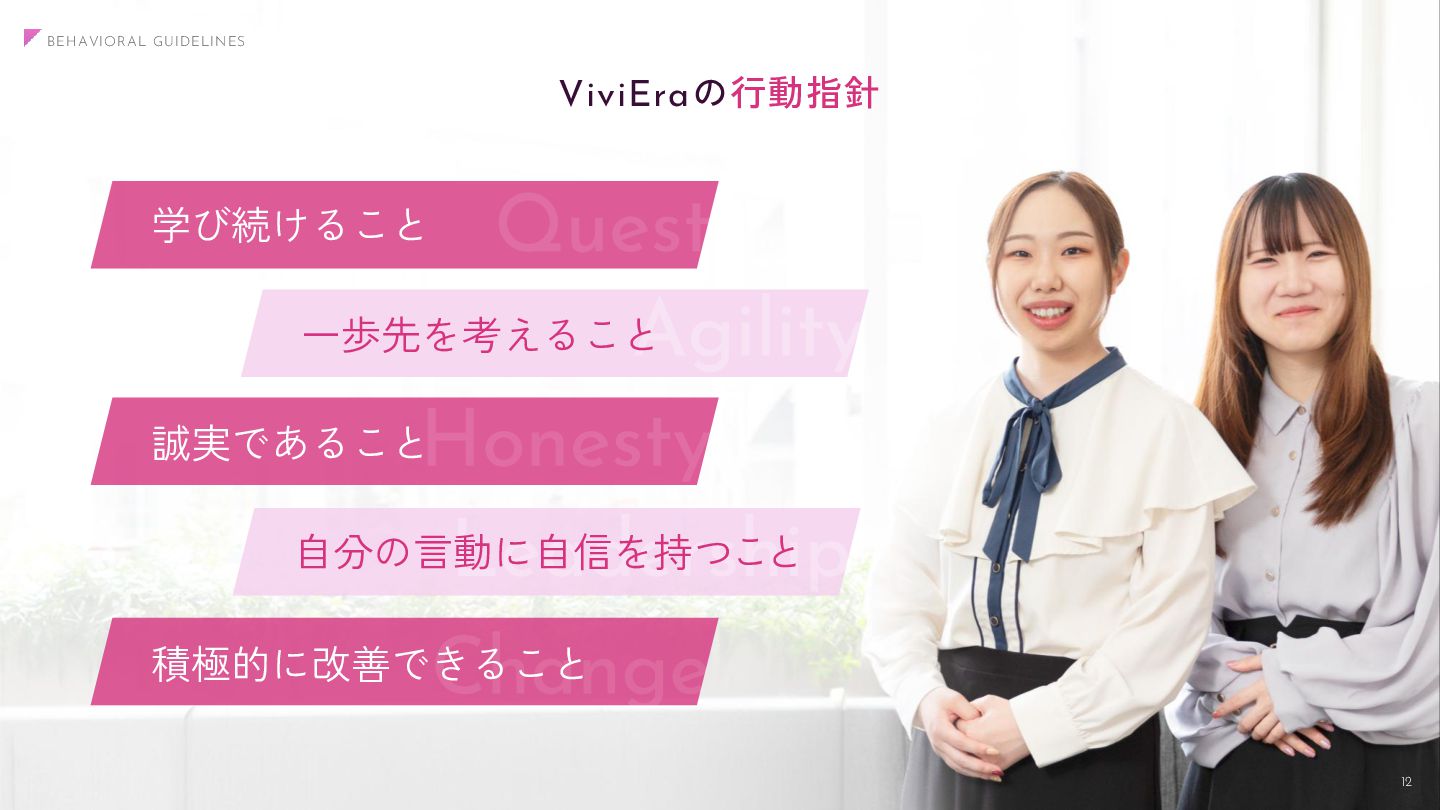 BEHAVIORAL GUIDELINES 12 ViviEraの行動指針 学び続けること 誠実であること 積極的に改善できること 一歩先を考えること 自分の言動に自信を持つこと
