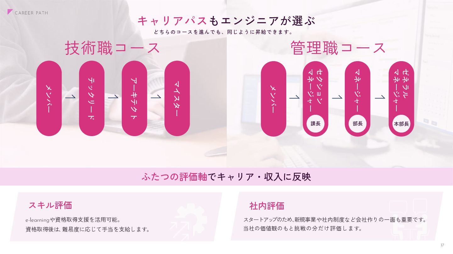 CAREER PATH 17 キャリアパスもエンジニアが選ぶ メンバー テックリード アーキテクト マイスター メンバー セクション