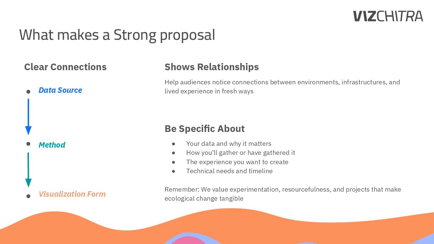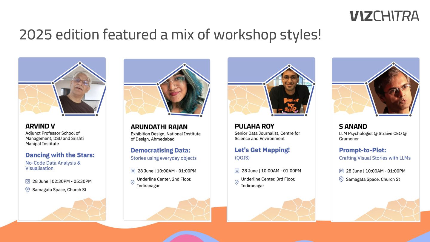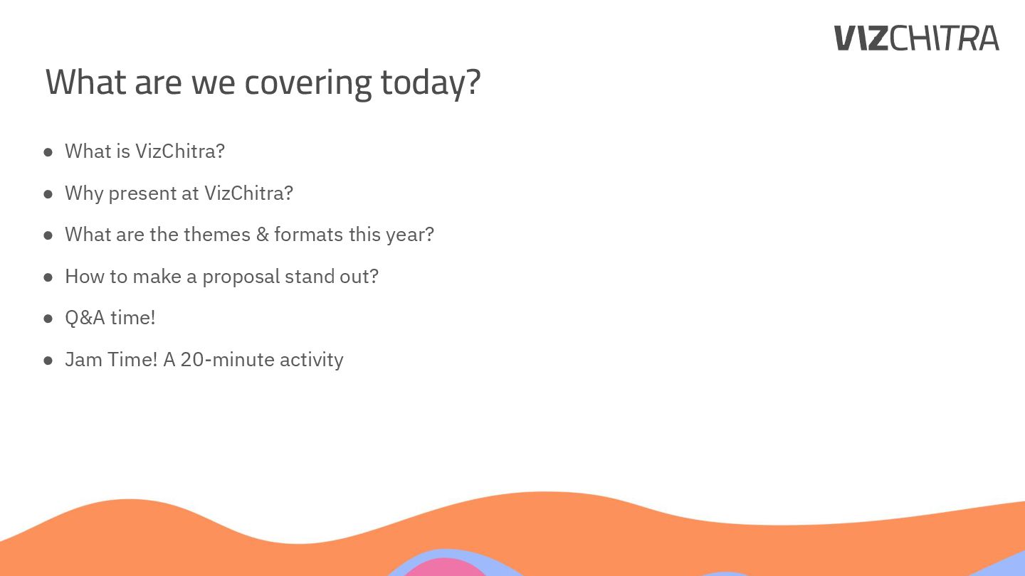Our annual conference - VizChitra 2026 is set to take place on July 03–04, 2026 in Bangalore . The Call for Proposals and Call for Exhibition is open until February 15th, 2026. We’re looking for talks, workshops, dialogues (facilitated discussions) & exhibition (data art installations) proposals. To help everyone craft a strong proposal and make a submission, or address any queries around submissions, we hosted a Proposal Jam on 31st Jan. You can watch the video on Youtube