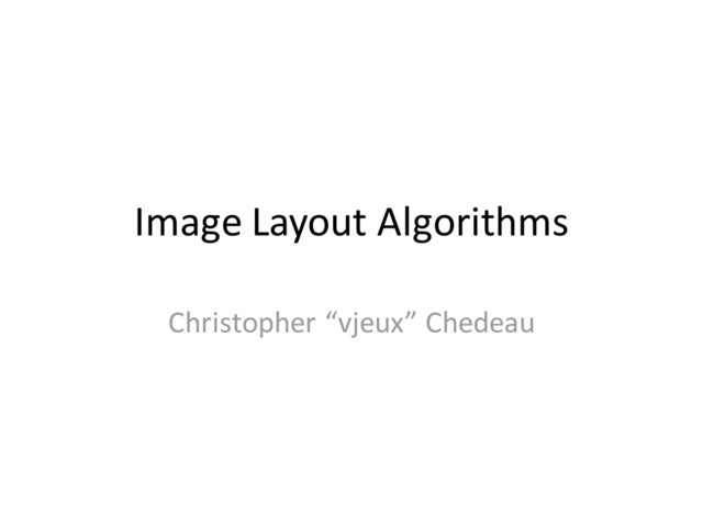Crop? – Predefined sizes, Adjustments • Resize / Whitespace? – Contain, Cover • Sizes? – Few Predefined sizes, Arbitrary based order • Order? – Strictly respected, loosely respected • Make images bigger? – All & Any, Only some, None • Are modifications (insert, remove, move) highly impacting? – Real time, Not real time