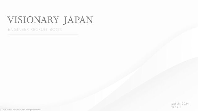 Co., Ltd. All Rights Reserved. 株式会社VISIONARY JAPAN 代表取締役 小野 恭佑 本社 東京オフィス:東京都新宿区新宿3-5-6 キュープラザ新宿三丁目6階 横浜オフィス:神奈川県横浜市西区北幸2丁目10-28むつみビル3階 大阪オフィス:大阪府大阪市北区梅田1-1-3大阪駅前第3ビル 29階 1-1-1号室 福岡オフィス:福岡県福岡市中央区天神4-6-28天神ファーストビル7階 名古屋オフィス:愛知県名古屋市中村区名駅3-4-10アルティメイト名駅1st 2階 2022年3月 9,000,000円 ※増資予定:2024年5月 50,000,000円 144名 IT Solution事業/HR 事業 (組織コンサルティング) 法テラス前理事長 寺井一弘 / SAKURA法律事務所 道下 剣志郎 税理士法人越智会計事務所 ASC社会保険労務士法人 労働者派遣事業許可番号 派13-317147 会 社 名 代 表 者 所 在 地 設 立 資 本 金 従 業 員 数 事 業 内 容 顧 問 弁 護 士 顧 問 税 理 士 顧 問 社 労 士 事 業 許 可 番 号 ・ ・ ・ ・ ・ A b o u t u s