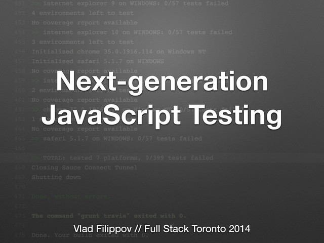 Next-generation JavaScript Testing Vlad Filippov // Full Stack Toronto 2014