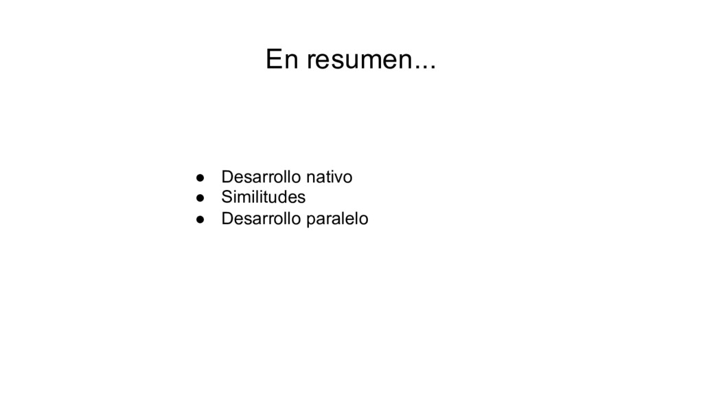 En resumen... • Desarrollo nativo • Similitudes • Desarrollo paralelo