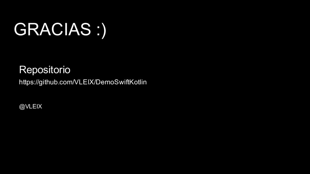 GRACIAS :) Repositorio https://github.com/VLEIX/DemoSwiftKotlin @VLEIX
