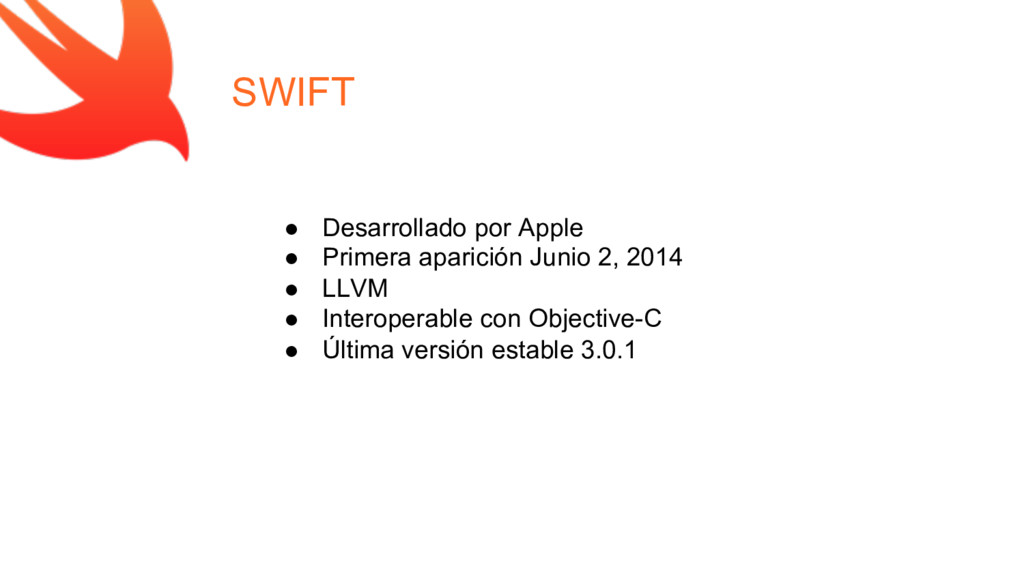 SWIFT • Desarrollado por Apple • Primera aparición Junio 2,