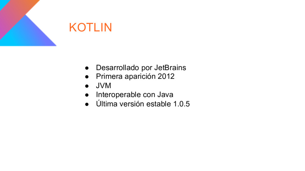 KOTLIN • Desarrollado por JetBrains • Primera aparición 2012 •