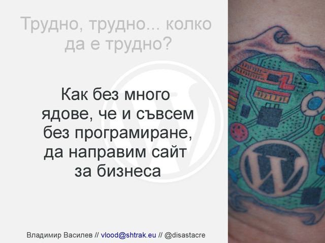 WordPress? – WordPress.org & WordPress.com • Защо препоръчвам именно WordPress за начинаещите в web? • Основните принципи на WordPress • Какво можем да правим с WordPress? • Какво можете да (на)правите след лекцията ми?