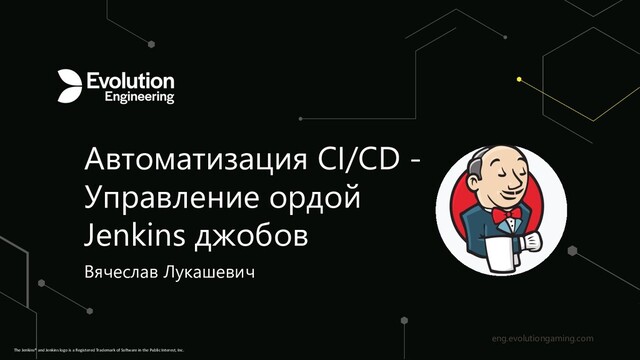 В Evolution Engineering используют Jenkins — популярную open source-систему, в которой много функциональности реализовано через плагины. Раньше было много настроенных вручную Jenkins-билдов для регрессионных тестов и их поддержка, и расширение были неудобным, неэффективным. В компании Вячеслава внедрили автоматизацию Jenkins, которая позволила полностью настраивать его через код. Это позволило ускорить создание новых билдов и улучшило их поддержку, а также подтолкнуло развитие экспертизы CI/CD среди QA-инженеров.