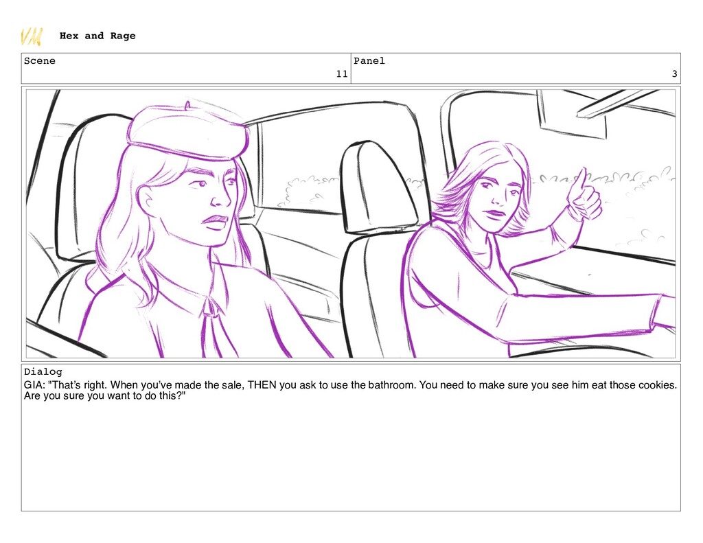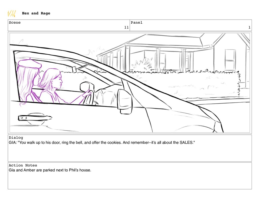 his door, ring the bell, and offer the cookies. And remember--it’s all about the SALES." Action Notes Gia and Amber are parked next to Phil’s house. Hex and Rage