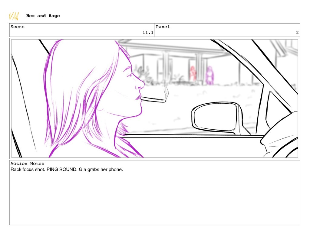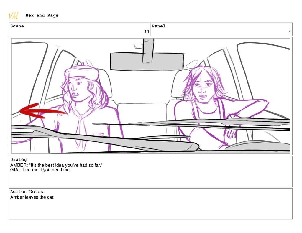 you’ve had so far." GIA: "Text me if you need me." Action Notes Amber leaves the car. Hex and Rage
