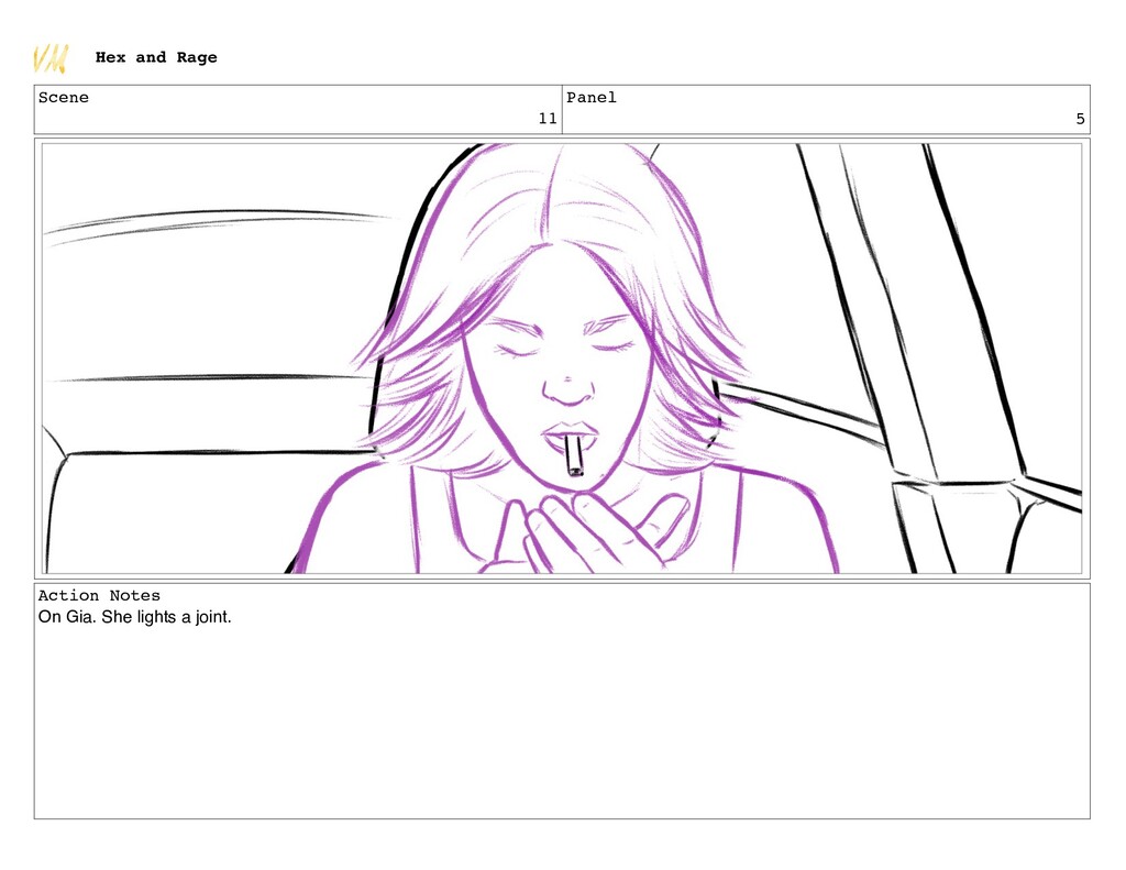 Scene 11 Panel 5 Action Notes On Gia. She lights