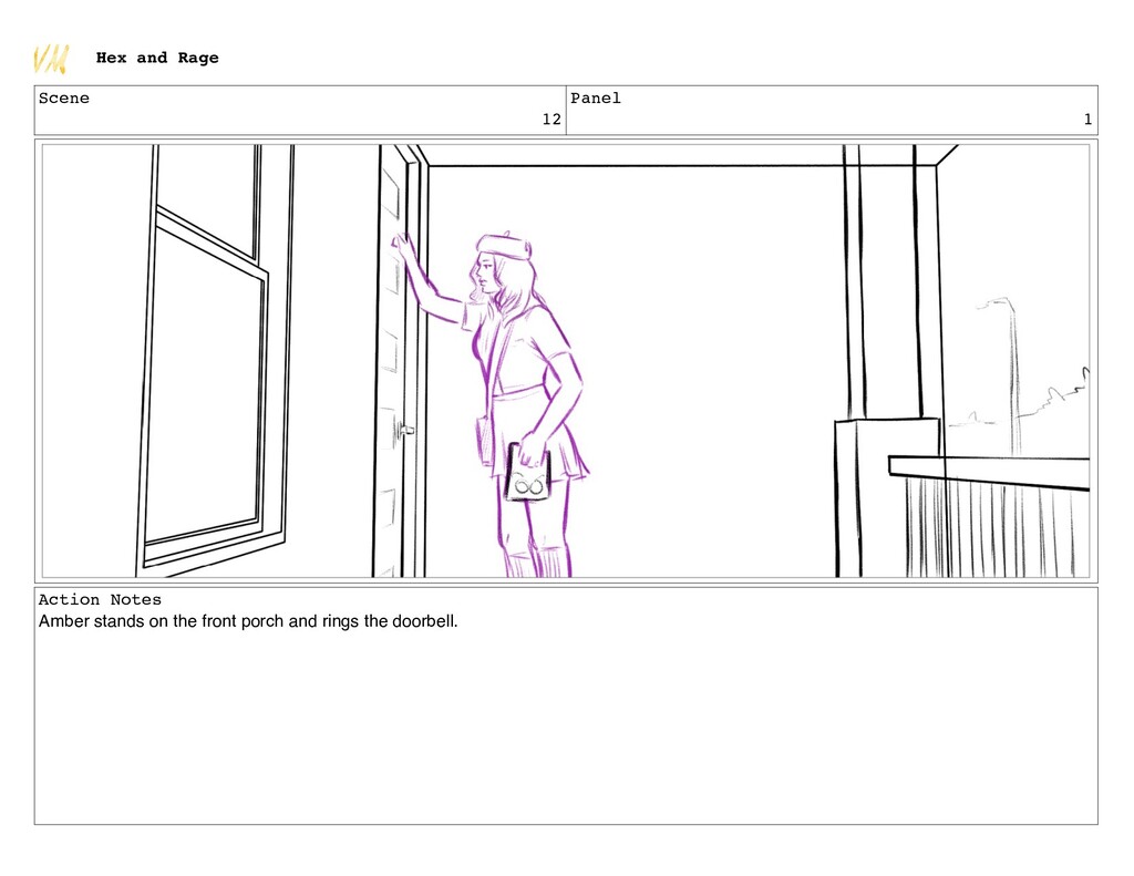 Scene 12 Panel 1 Action Notes Amber stands on the