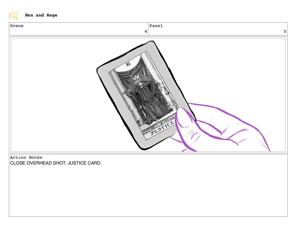 Scene 4 Panel 5 Action Notes CLOSE OVERHEAD SHOT: JUSTICE