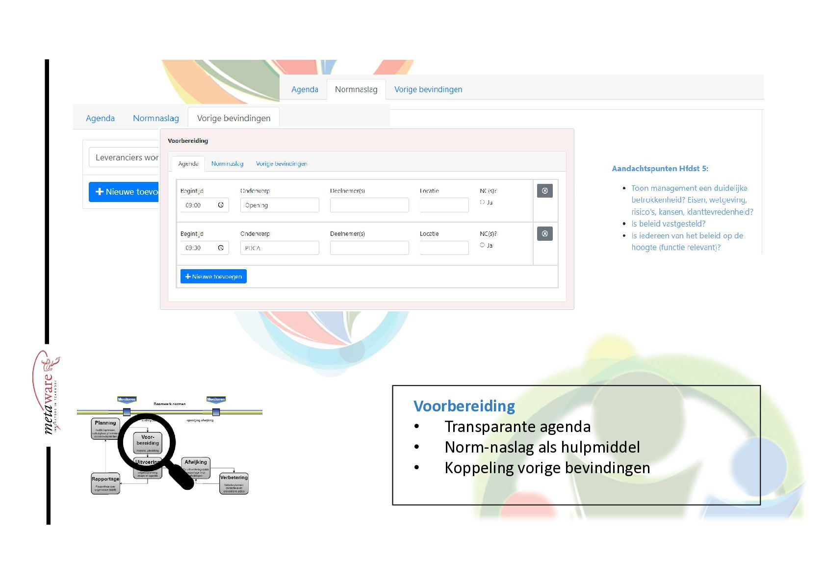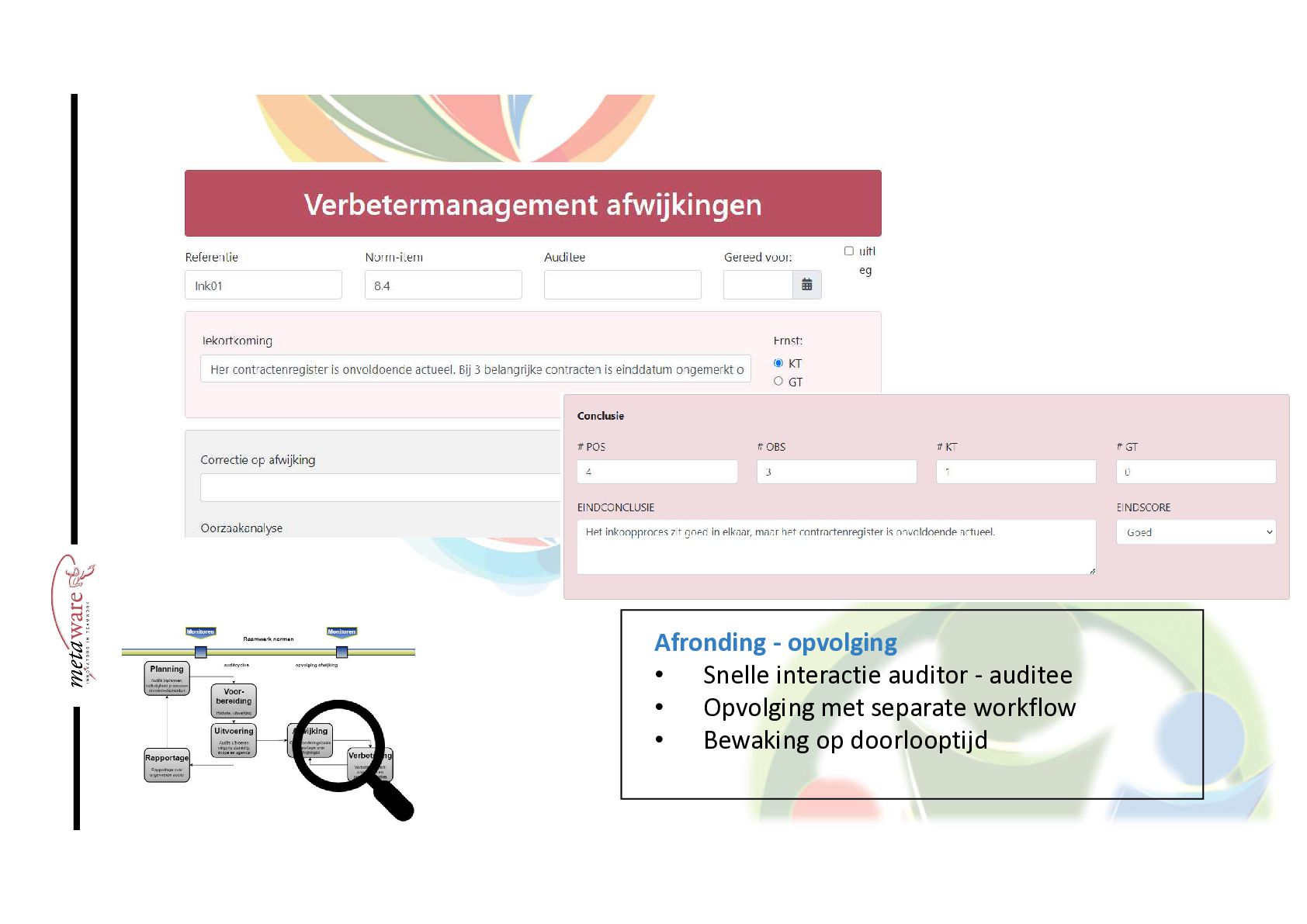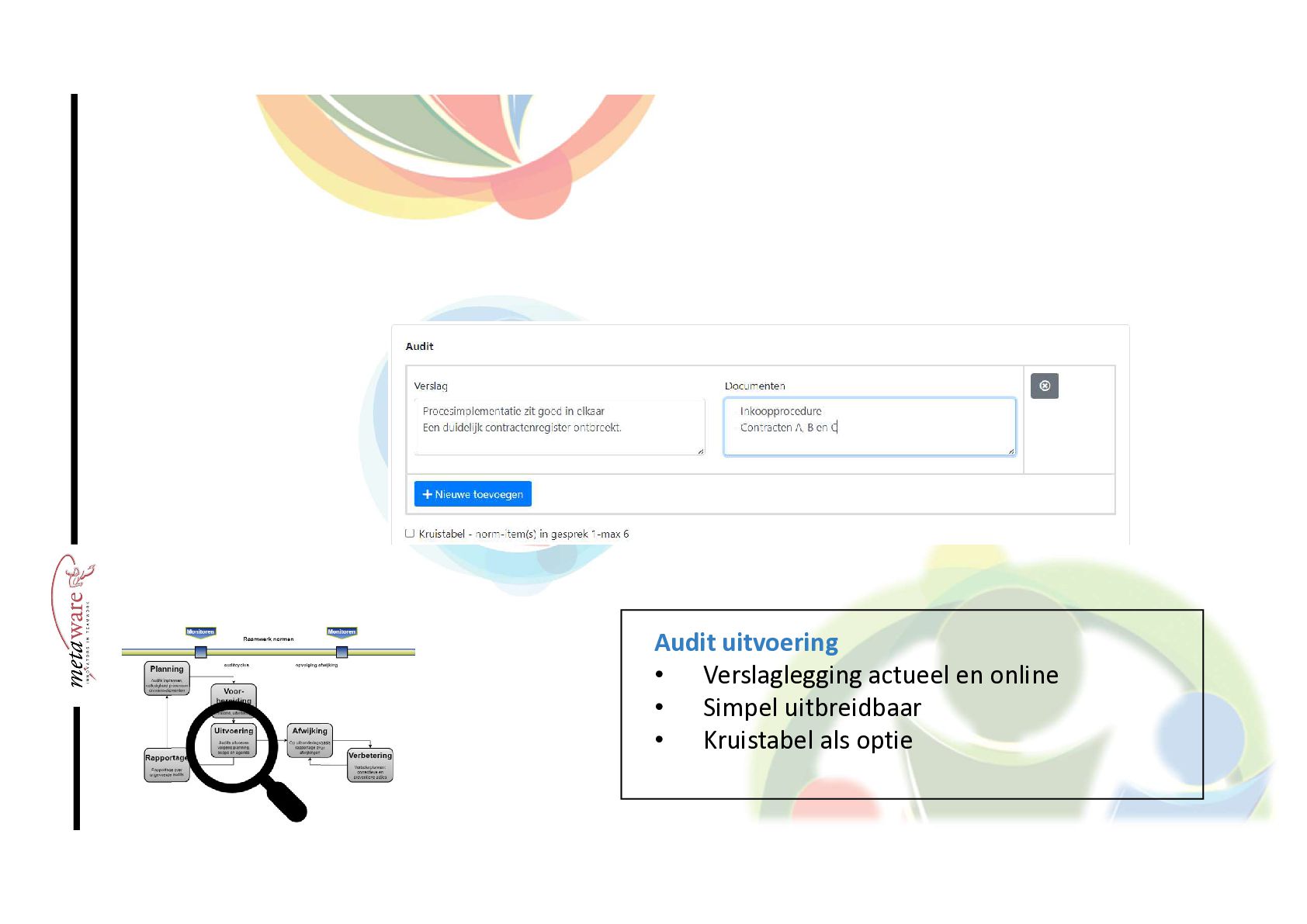 Audit tool voor kwaliteitsmanagement. Meer op WWW.METAWARE.NL/PLATFORM