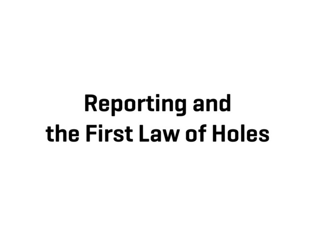 There’s another way. A better way. A simple pattern that is fast, scalable and robust, saving blood, sweat, and tears. It’s a pattern you will want in your application from day one, but works even if you have a legacy application with reporting problems. You’re in deep, but fear not, for the First Law of Holes will save the day.