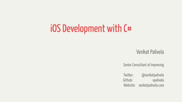 iOS Development with C# Venkat Palivela Senior Consultant at Improving