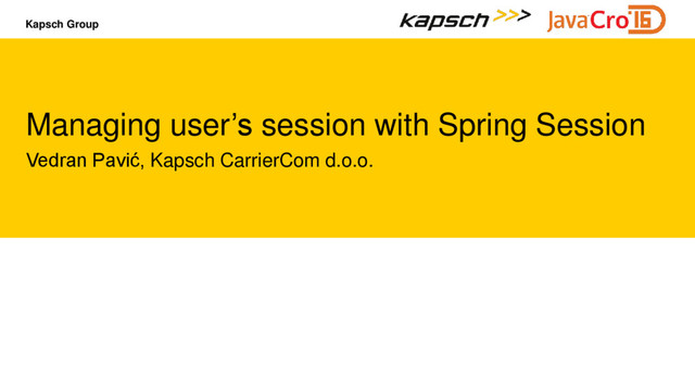 Kapsch CarrierCom d.o.o. since 2011 Developing solutions in Telco industry, primarily related to Number Portability An active contributor in open-source community (mostly Spring related projects) Managing user’s session with Spring Session | JavaCRO '16 2