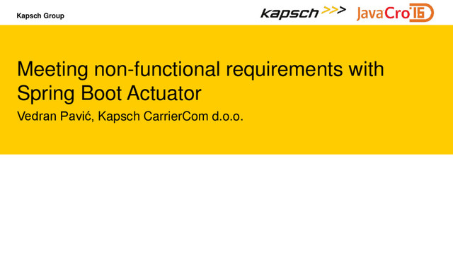 application – useful for monitoring software, load-balancers, etc. Overall health information is contributed by multiple health indicators Many health indicators available out of the box, depending on what you use in your application (JDBC data source, JMS broker, Mail server…) Meeting non-functional requirements with Spring Boot Actuator | JavaCRO '16 7