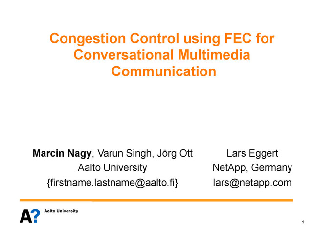 the error protection method • Rate control aims at optimal network path utilization – Mitigates risk of congestion losses • Rate control requires probing for capacity • Idea: 1. Use FEC to probe for available bandwidth 2. Additional stream protection è more aggressive probing