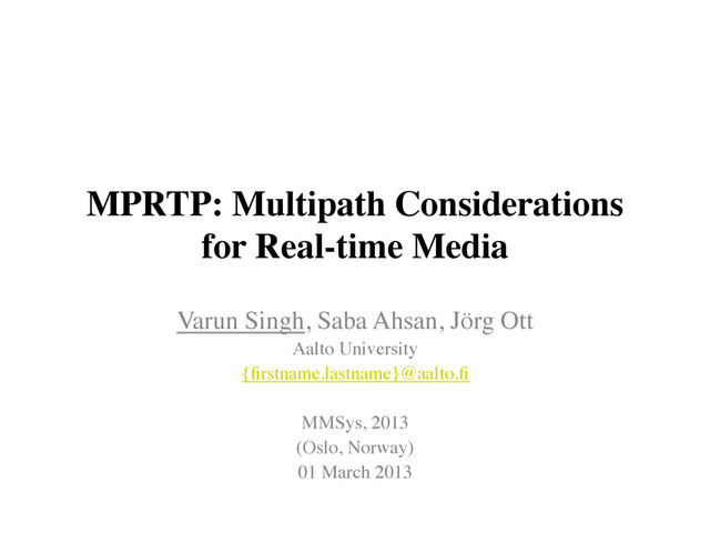 do not require applications to do anything • Keep the RTP/RTCP flow properties – i.e., do not confuse middleboxes, monitors, … that see packets on a single path only