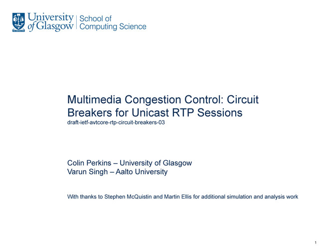 Colin Perkins – University of Glasgow Varun Singh – Aalto University With thanks to Stephen McQuistin and Martin Ellis for additional simulation and analysis work 1