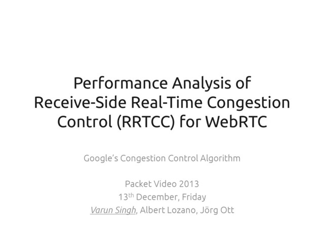 for Real-Time Flows, Cicco et al. http://conferences.sigcomm.org/sigcomm/2013/papers/fhmn/p21.pdf • Performance analysis of topologies for Web- based Real-Time Communication (WebRTC), A. Lozano https://aaltodoc.aalto.fi/bitstream/handle/123456789/11093/master_Abell%C3%B3_Lozano_Albert_2013.pdf?sequence=1 • Understanding the Dynamic Behaviour of the Google Congestion Control, Cicco et al. 4 Initial NS-2 Results: http://www.netlab.tkk.fi/~varun/rrtcc-tcp-competition-00.pdf