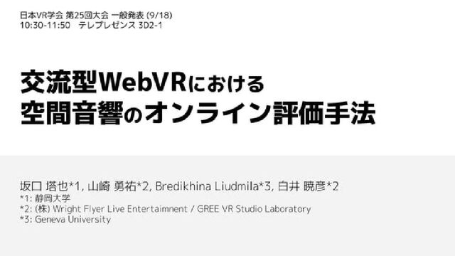 「交流型WebVRにおける空間音響のオンライン評価手法」
