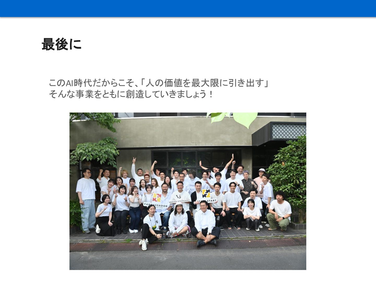 最後に このAI時代だからこそ、「人の価値を最大限に引き出す」 そんな事業をともに創造していきましょう!