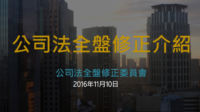 公司法全盤修正介紹 公司法全盤修正委員會 2016年11月10日