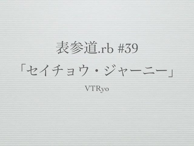 දࢀಓ.rb #39 ʮηΠνϣɾδϟʔχʔʯ VTRyo