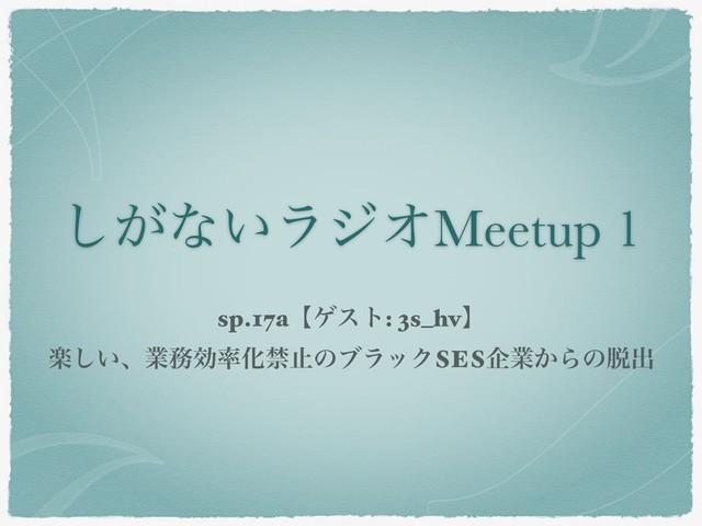 ͕͠ͳ͍ϥδΦMeetup 1 sp.17aʲήετ: 3s_hvʳ ָ͍͠ɺۀޮԽېࢭͷϒϥοΫSESاۀ͔Βͷग़