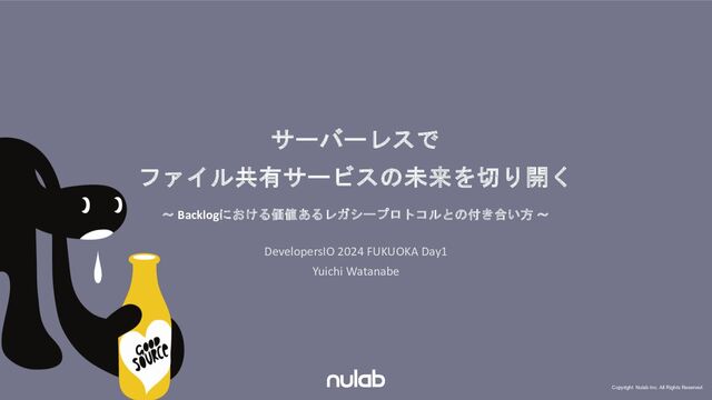 びBacklogのチームへと戻りGitホスティング領域の開 発と運用を支えています。 X:https://x.com/vvvatanabe GitHub:https://github.com/vvatanabe 自己紹介 Copyright Nulab Inc. All Rights Reserved.