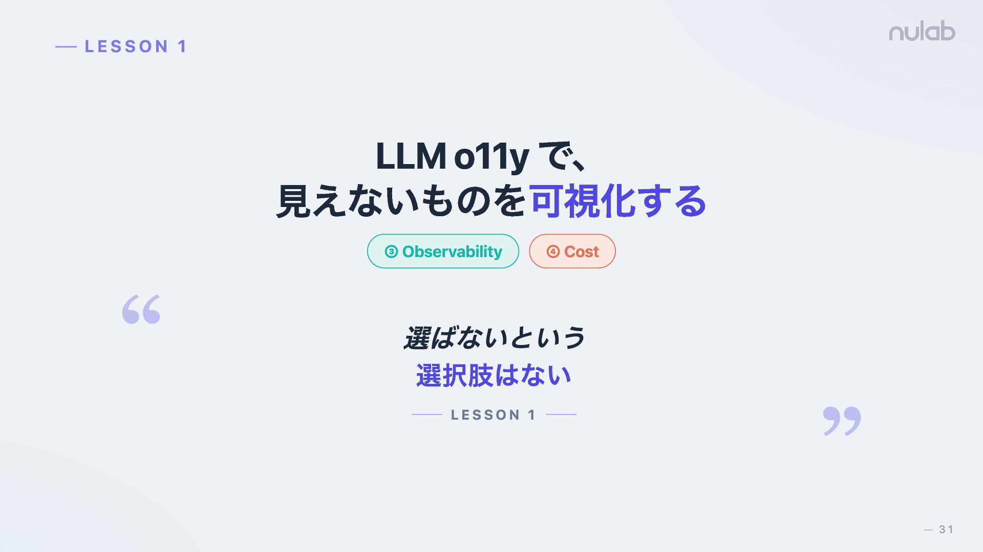 28. LLM o11y で、 見えないものを可視化する ③ Observability ④ Cost LESSON 1