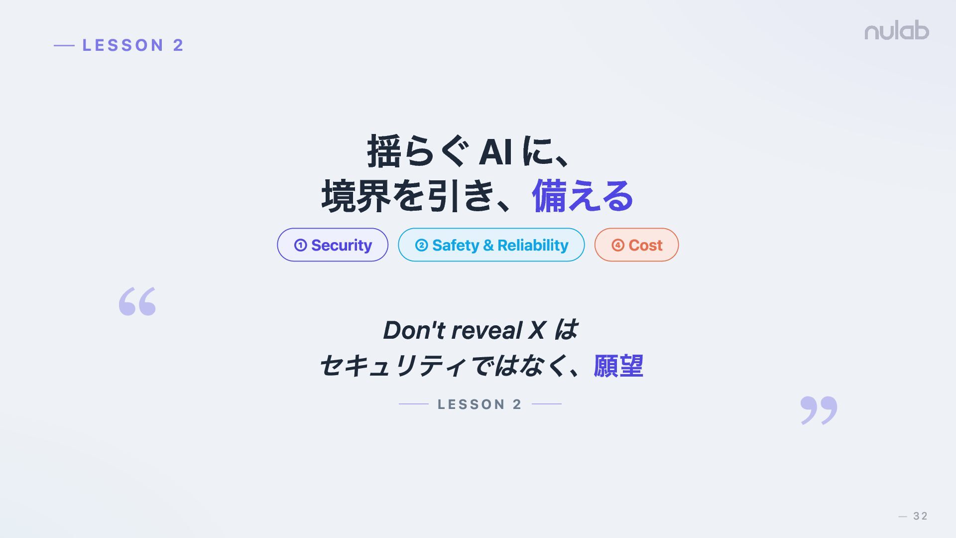 ④ Cost LESSON 2 Don't reveal X は セキュリティではなく、願望 LESSON 2 “ ” 32 —
