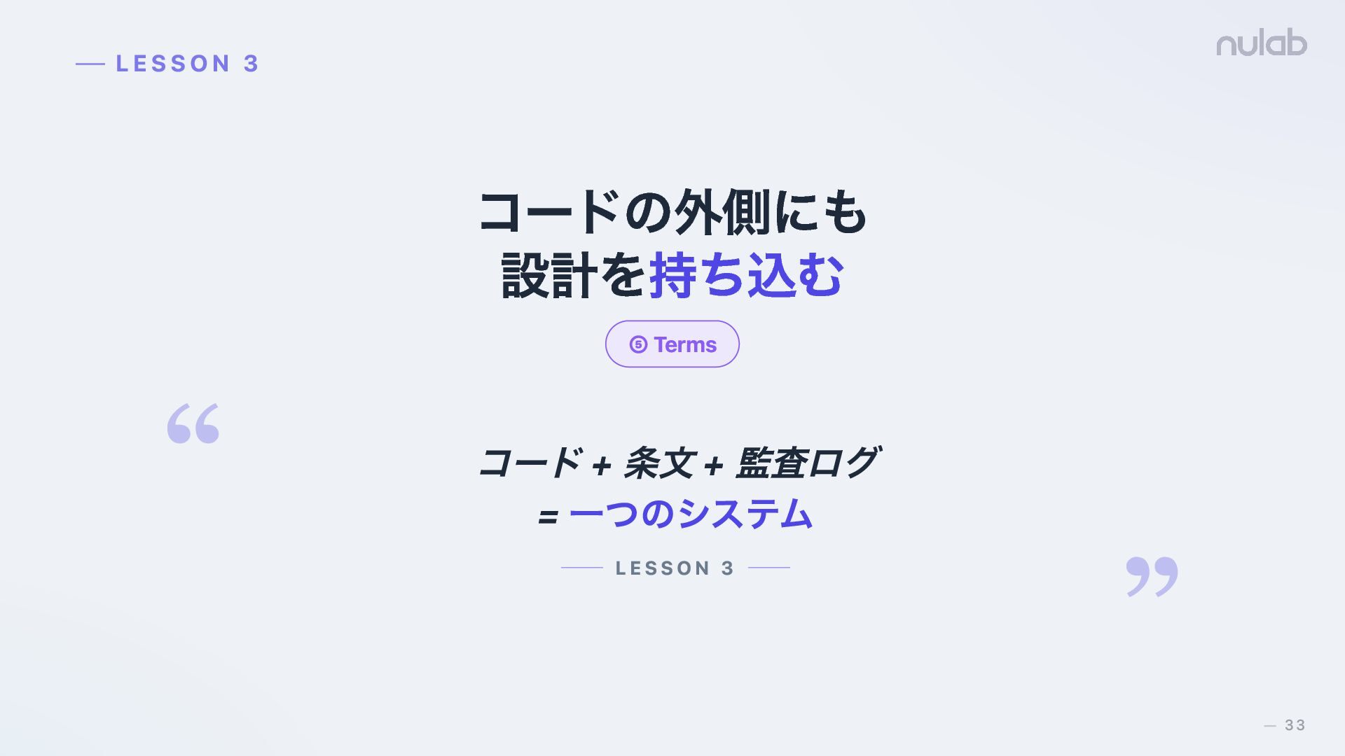 30. コードの外側にも 設計を持ち込む ⑤ Terms LESSON 3 コード + 条文 +