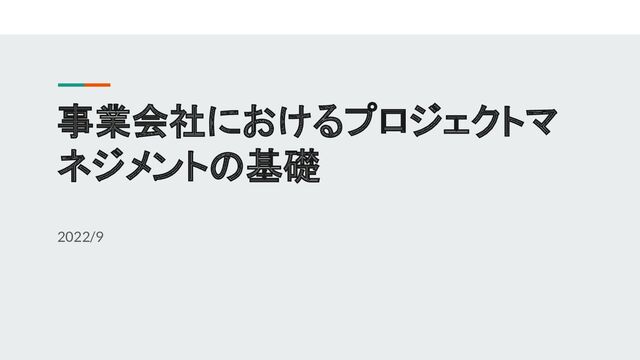 事業会社におけるプロジェクトマ ネジメントの基礎 2022/9