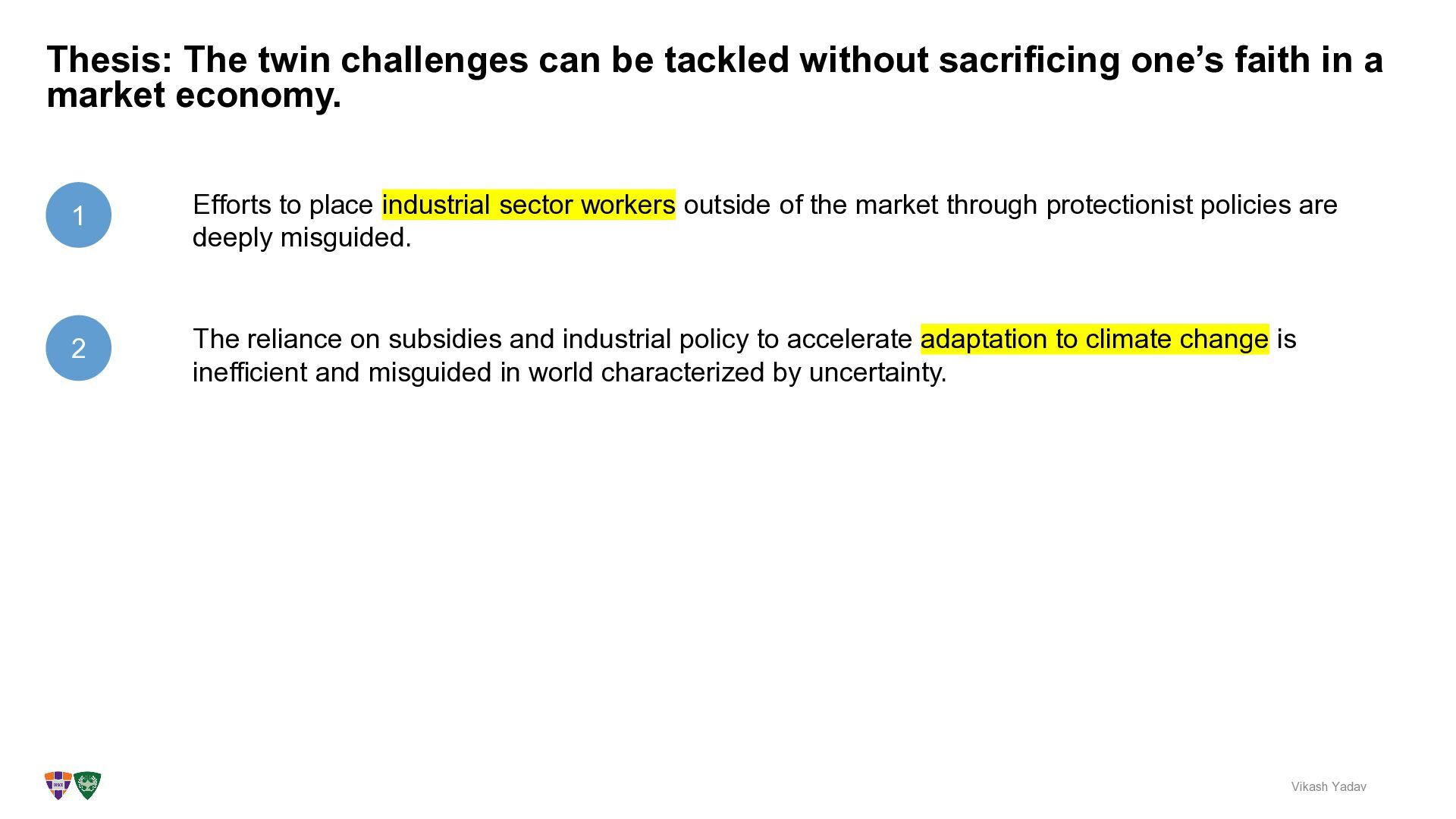 faith in a market economy. Vikash Yadav 1 2 Efforts to place industrial sector workers outside of the market through protectionist policies are deeply misguided. The reliance on subsidies and industrial policy to accelerate adaptation to climate change is inefficient and misguided in world characterized by uncertainty.