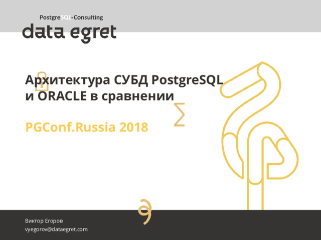 Доклад рассматривает следующие компоненты СУБД PostgreSQL, сравнивая архитектурные решения с СУБД ORACLE: