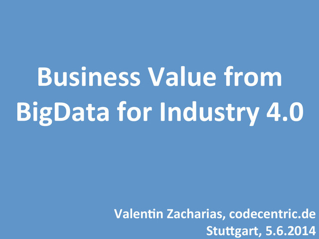 from “Big Data AnalyLcs – auf dem Weg zur Datengetriebenen Wirtscha2”, BARC Research Use Case Department Use BDA Plan BDA Test Data Analysis R&D 20% 52% Root Cause Analysis ProducLon 13% 59% PaRern DetecLon in Customer Complaints Customer Service 7% 61% Warranty Analysis Customer Service 6% 39%