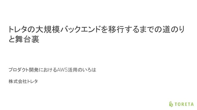 トレタの大規模バックエンドを移行するまでの道のり と舞台裏 プロダクト開発におけるAWS活用のいろは 株式会社トレタ