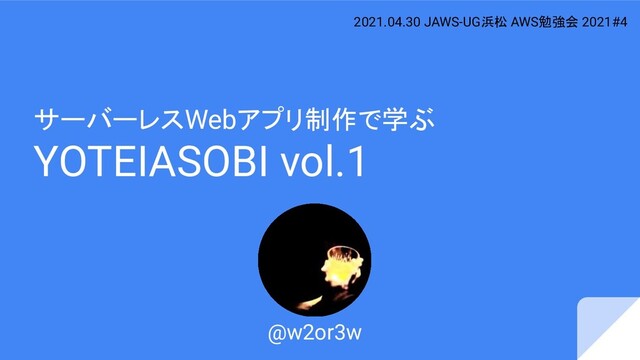 サーバーレスWebアプリ制作で学ぶ YOTEIASOBI vol.1 @w2or3w 2021.04.30 JAWS-UG浜松 AWS勉強会 2021#4